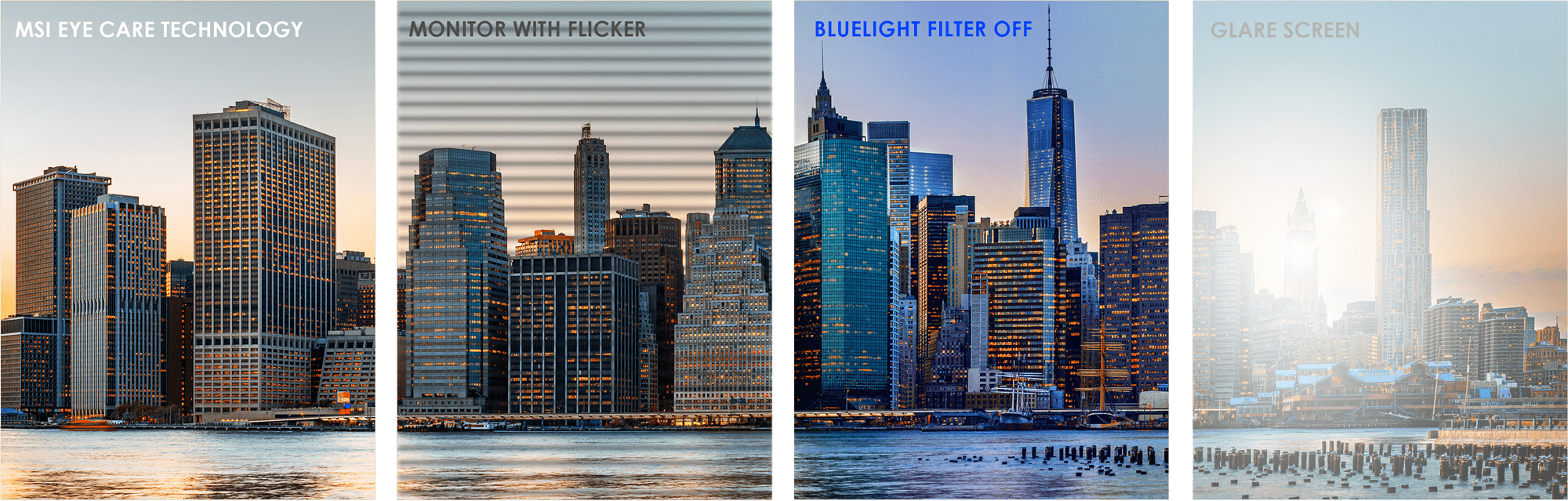MSI Eye Care: 防闪烁+滤蓝光技术+防眩光显示