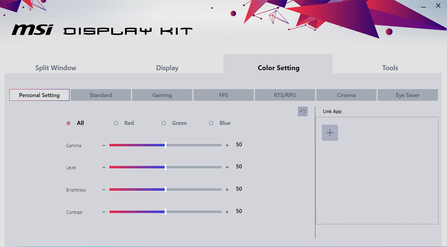 MSI DISPLAY KIT软件提供方便的工具,让您在阅读或观看图像是能够使用适合的显示模式