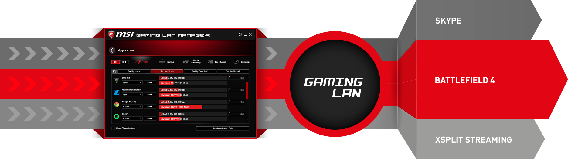 为网络游戏优化而打造,微星GAMING网络带宽管理软件,可自动进行分类,将网络游戏使用的带宽需求安排在优先位置。