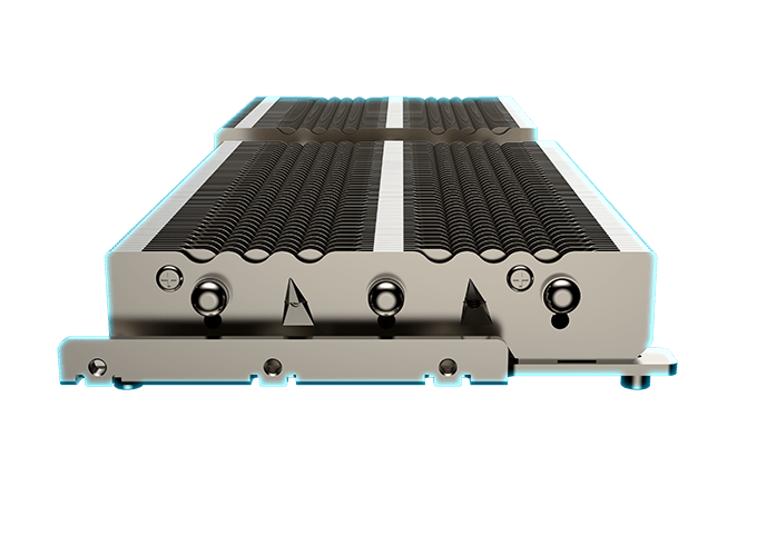 经过精密加工的核心热管能够最大限度的利用空间。热管的方形部分能够完全接触到覆盖于GPU核心上的纯铜底座表面,从而再把热量进一步传导到整个散热器的所有散热鳍片上。