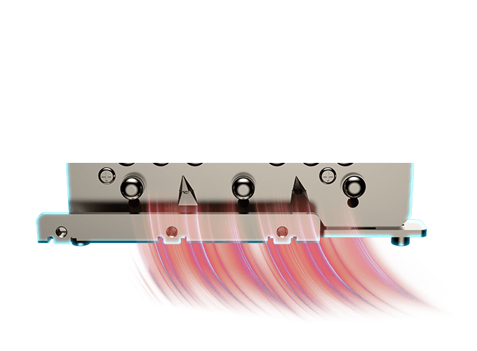 利用TRI FROZR 3散热系统中核心技艺:刀锋7代风扇、方形核心热管和气流导向技术达到强劲的散热水平