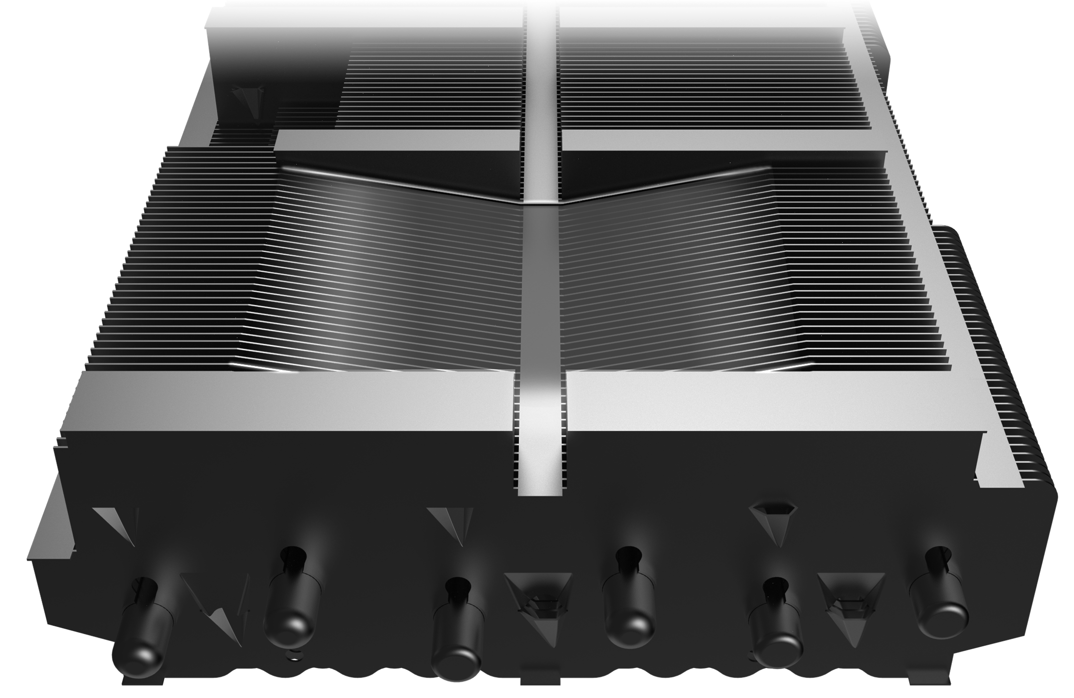位于气流通道处的散热鳍片带有V形切口设计,同时对倾斜角度进行了优化并增加了导流槽,从而提升气流流动效率,加速热空气的排出。