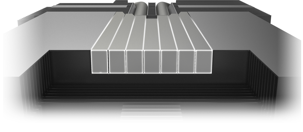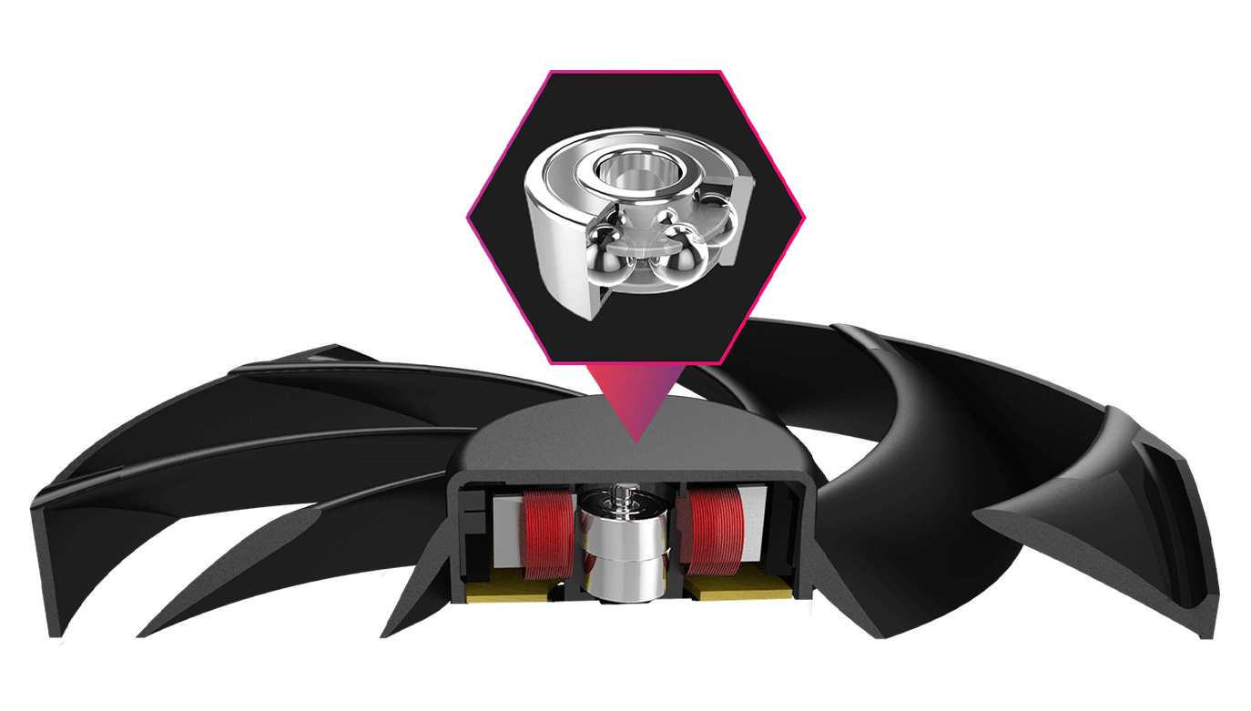 刀锋7代风扇是微星风扇设计进化的结晶,可提升风压并增加吹到散热鳍片上的气流,相比普通轴流风扇能增加23%。将三组倾斜22度的扇叶连接成环形的设计,使得在较慢的转速下也能保持高压气流,是微星显卡可以拥有如此静音效果的原因之一。