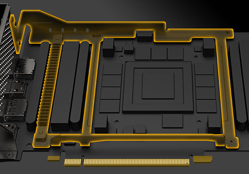 在显卡关键区域加配金属抗弯带,保护pcb的同时辅助散热。