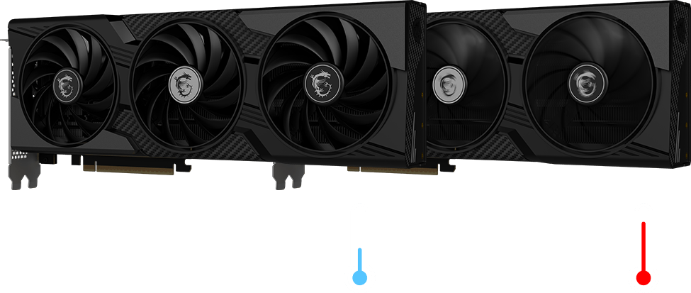 当显卡温度较低时,风扇会完全停止转动,从而彻底杜绝风扇噪音并延长风扇寿命。游戏开始之后,随着显卡温度上升,风扇将会自动恢复旋转,达到智能控制的效果。