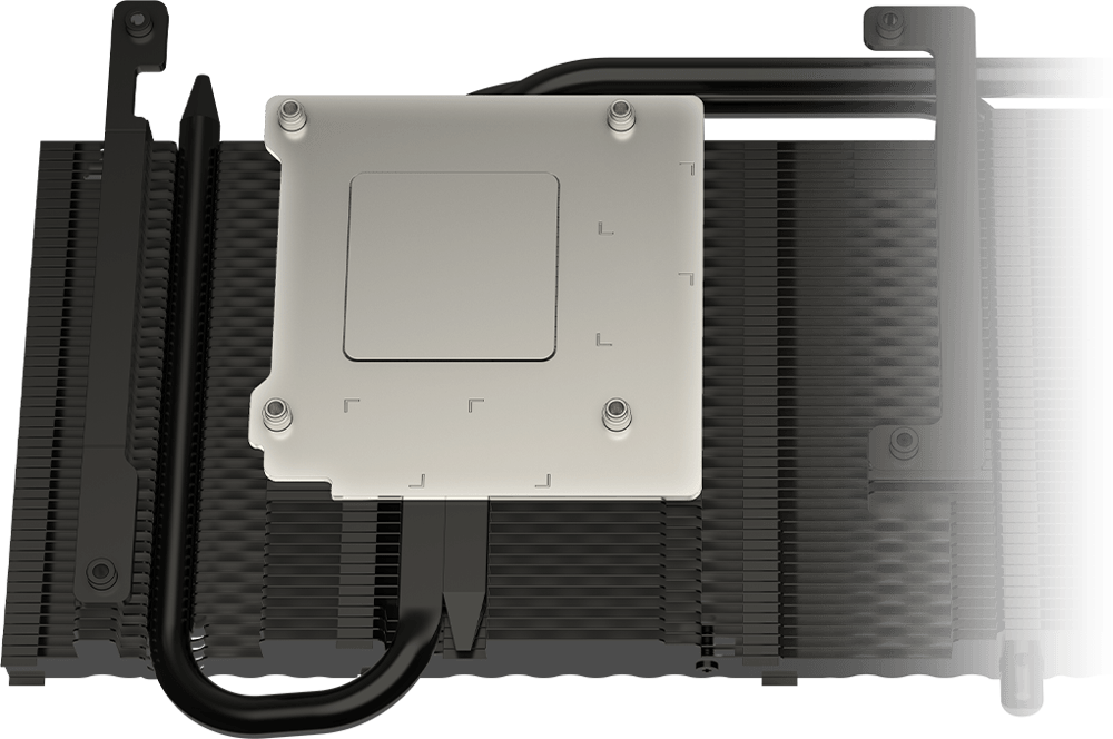 经过精密加工的方形核心热管能最大限度地利用空间,热管的方形部分能够充分接触覆盖于GPU核心上的底座表面,从而提升散热的效率。