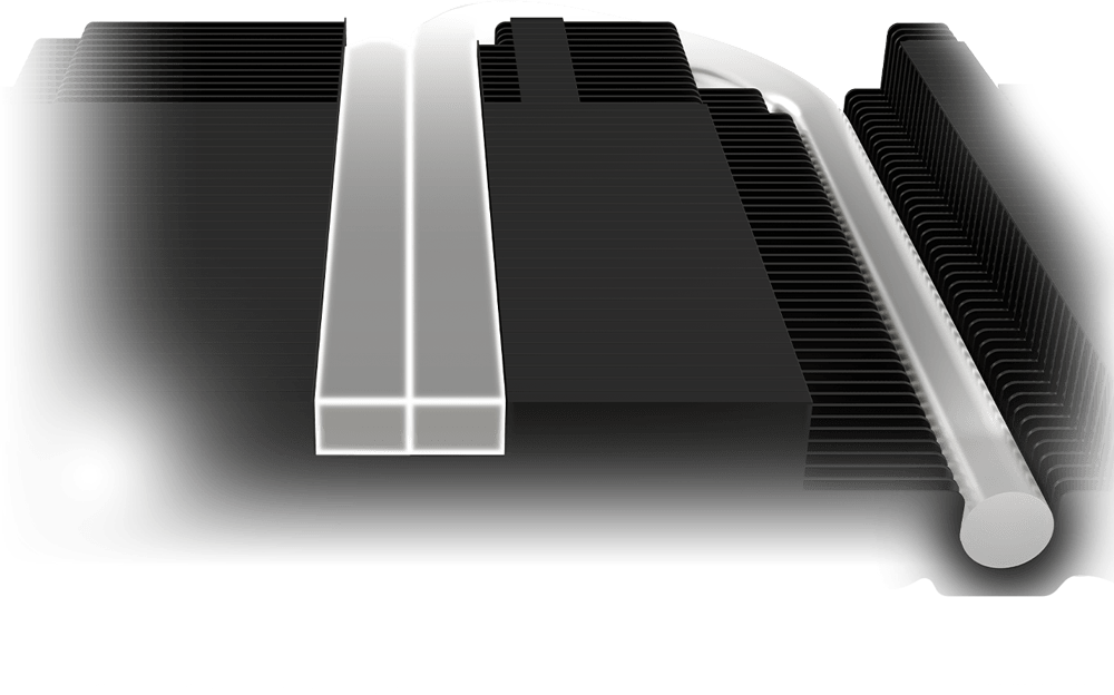 - 方形核心热管 热管的方形部分,以最大限度地与GPU底座接触,实现最佳的散热管理。