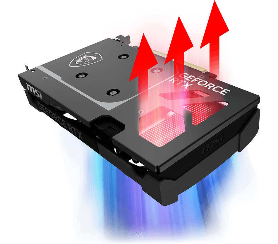 - 金属背板 : 坚固的金属背板有助于加固显卡,而气流通风口可让排出的空气通过,能有效减少多余热量。