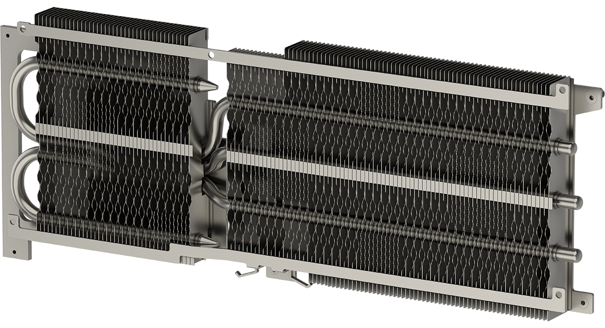 经过精密加工的方形核心热管能最大限度地利用空间,热管的方形部分能够充分接触覆盖于GPU核心上的底座表面,从而提升散热的效率。