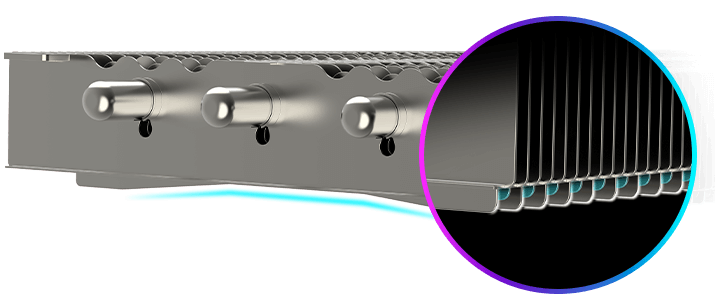 - 导流鳍片 2.0: 位于气流通道处的导流鳍片带有V形切口和高低错落的设计,可以提升气流流动效率。
