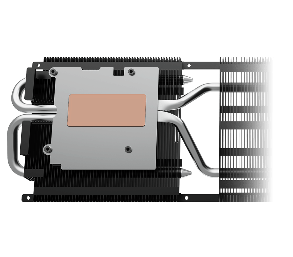 坚实的底座可以将GPU的热量迅速传导到所有热管上,有效提升了热传导系统的效率,从而实现更好的整体散热效果。