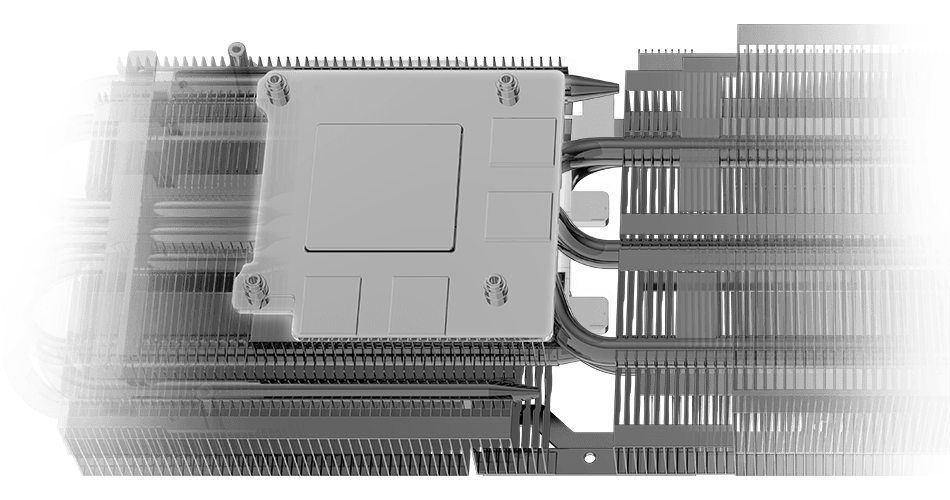- 方形核心热管: 热管的方形部分,以最大限度地与GPU底座接触,实现最佳的散热管理。