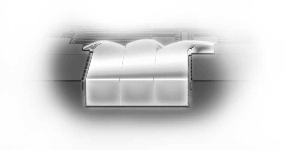 - 导流鳍片: 位于气流通道处的散热鳍片带有V形切口设计,同时对倾斜角度进行了优化并增加了导流槽,从而提升气流流动效率,加速热空气的排出。
