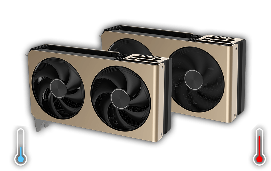 当显卡温度较低时,风扇会完全停止转动,从而彻底杜绝风扇噪音并延长风扇寿命。游戏开始之后,随着显卡温度上升,风扇将会自动恢复旋转,达到智能控制的效果。