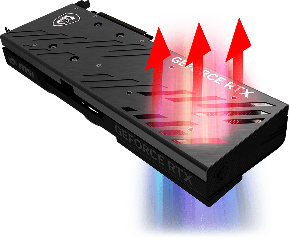 坚固的金属背板有助于加固显卡,而气流通风口可让排出的空气通过,能有效减少多余热量。