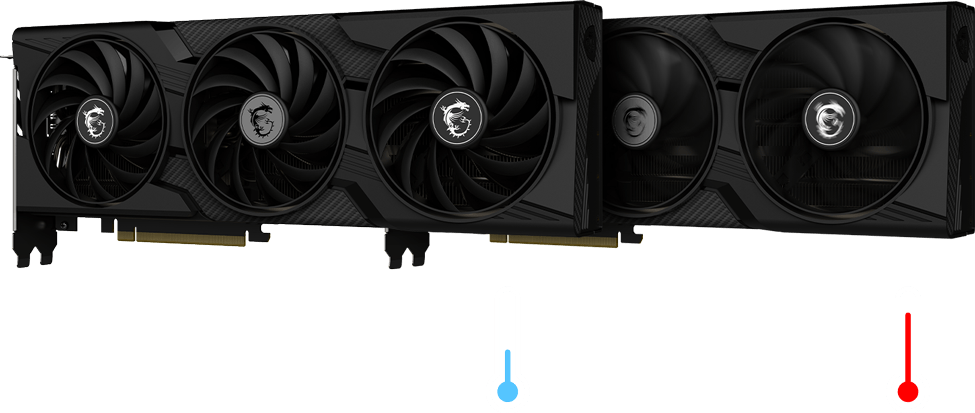 当显卡温度较低时,风扇会完全停止转动,从而彻底杜绝风扇噪音并延长风扇寿命。游戏开始之后,随着显卡温度上升,风扇将会自动恢复旋转,达到智能控制的效果。