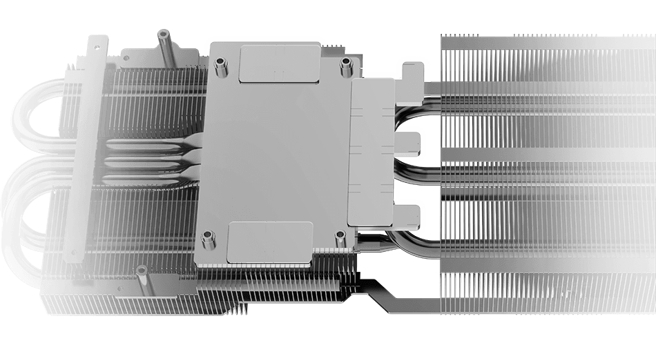 - 方形核心热管: 热管的方形部分,以最大限度地与GPU底座接触,实现最佳的散热管理。