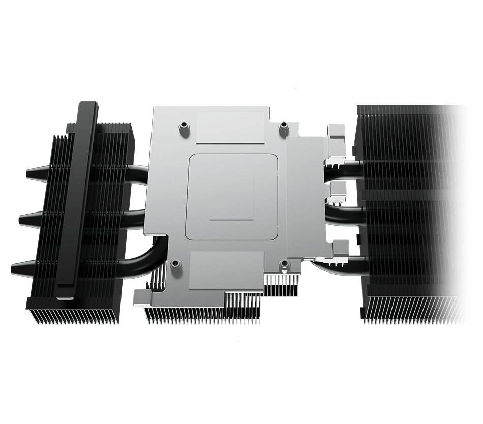 - 方形核心热管: 热管的方形部分,以最大限度地与GPU底座接触,实现最佳的散热管理。