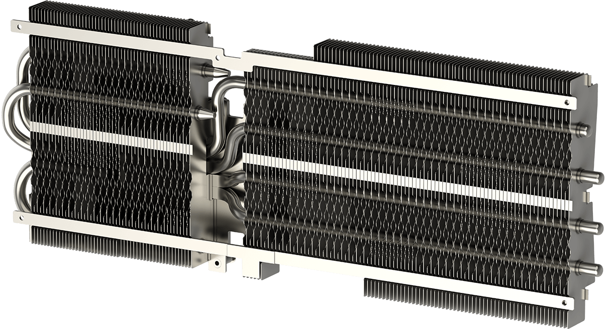 经过精密加工的方形核心热管能最大限度地利用空间,热管的方形部分能够充分接触覆盖于GPU核心上的底座表面,从而提升散热的效率。