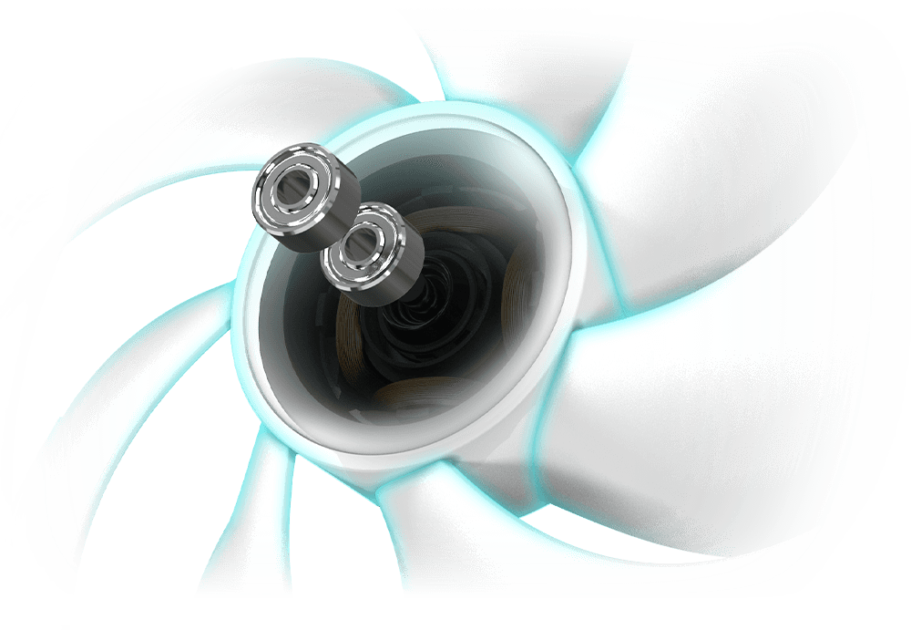 耐用的双滚珠轴承可使风扇在激烈的游戏使用场景下,拥有更长的寿命。