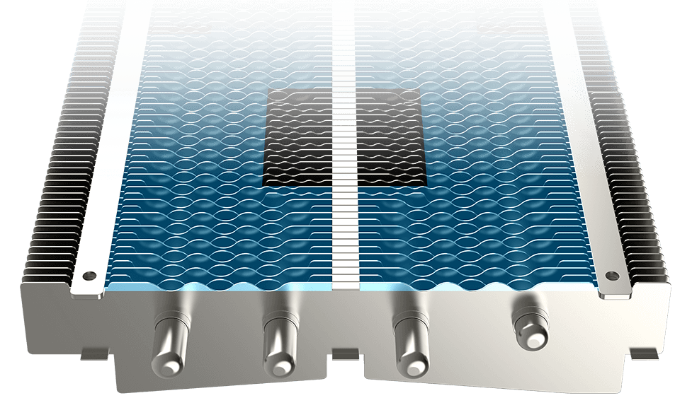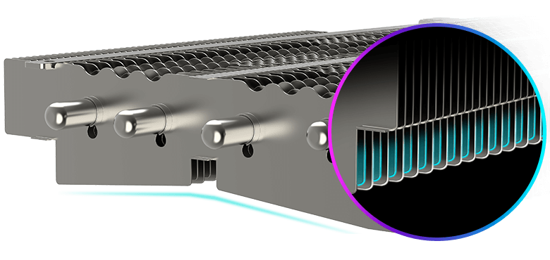 - 导流鳍片 2.0: 位于气流通道处的导流鳍片带有V形切口和高低错落的设计,可以提升气流流动效率。