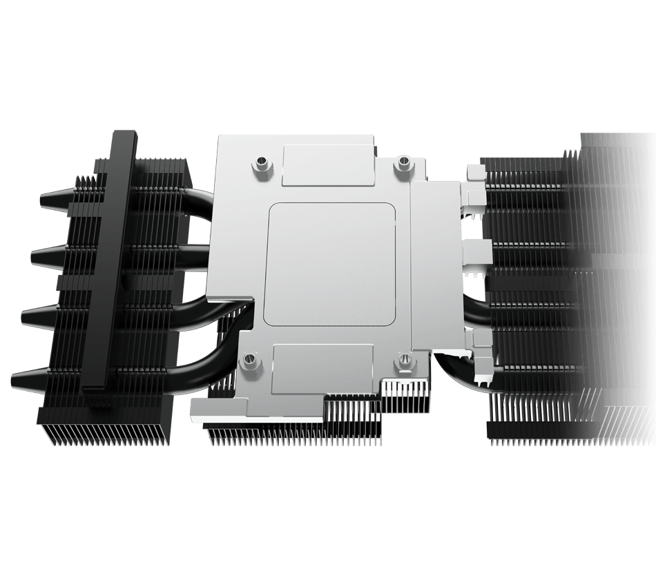 - 方形核心热管: 热管的方形部分,以最大限度地与GPU底座接触,实现最佳的散热管理。