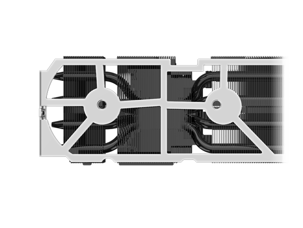 - 方形核心热管 热管的方形部分能够完全接触到覆盖于GPU核心上的均热板表面,再把热量进一步传导到整个散热器的所有散热鳍片上。