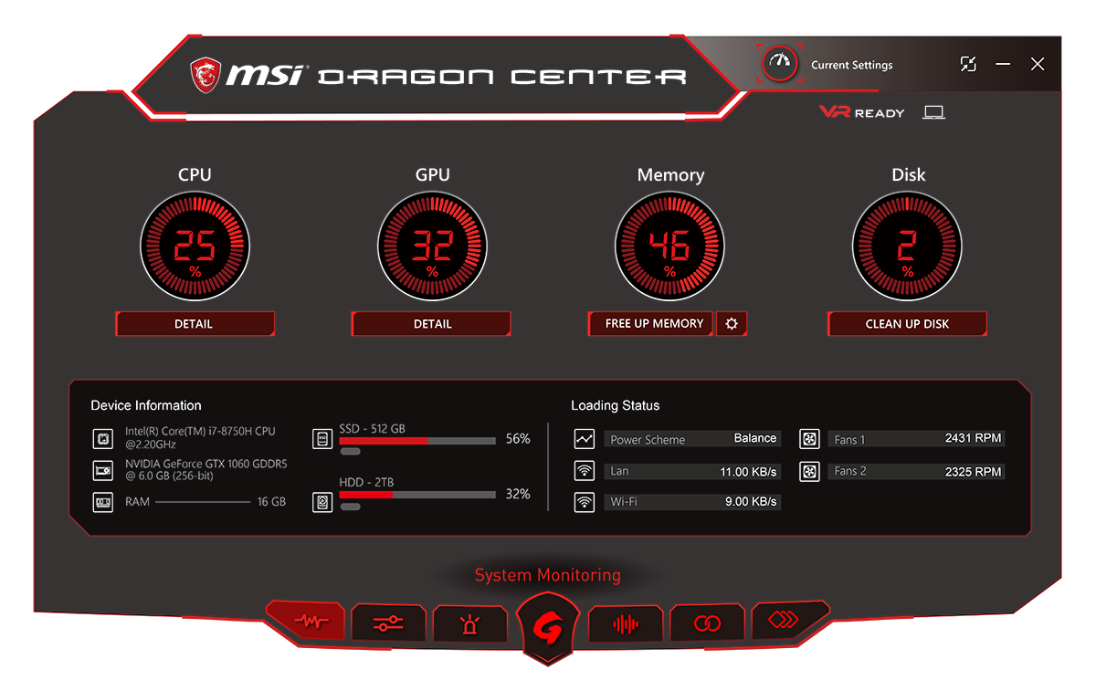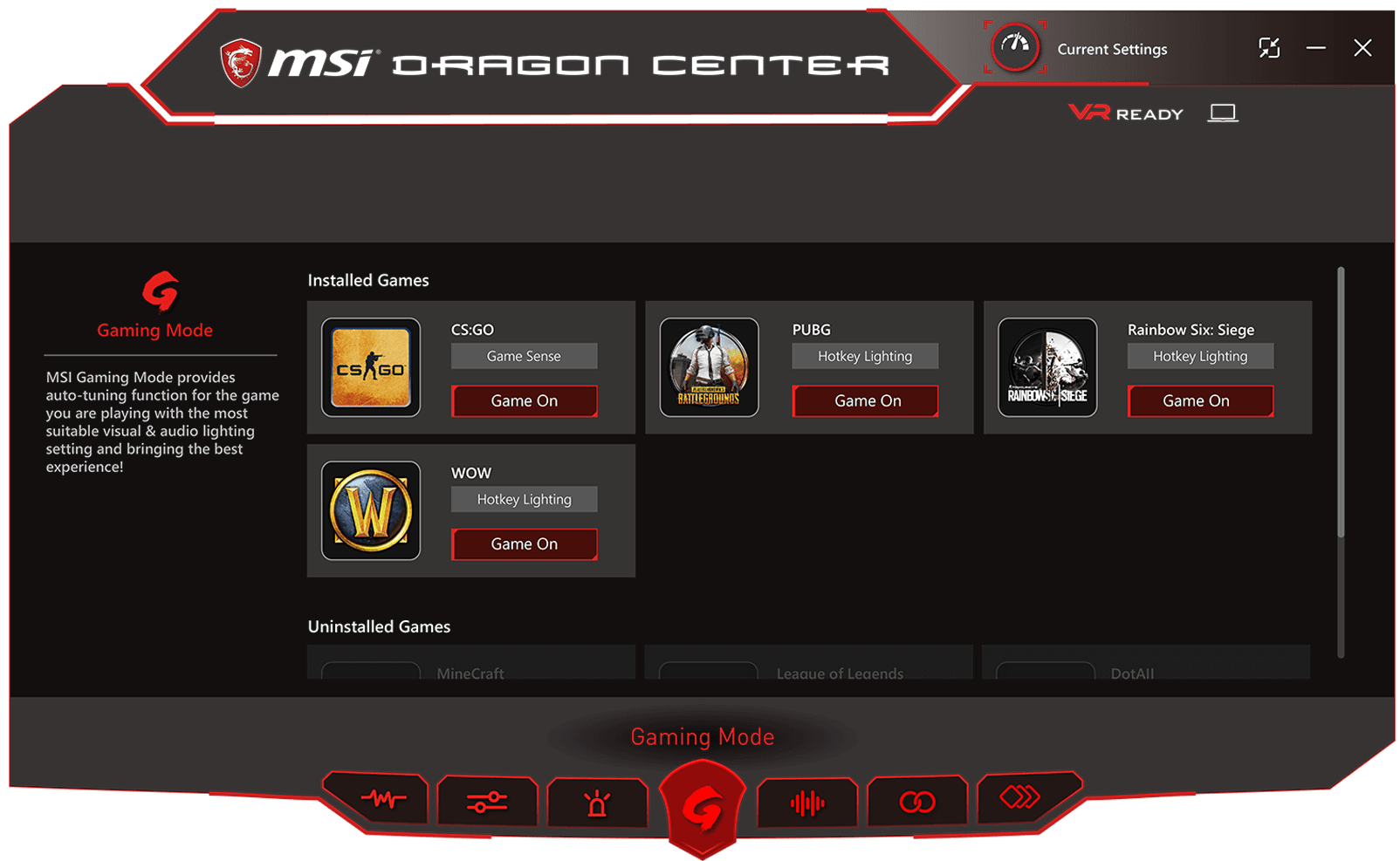 全新优化的Dragon Center2.0.不仅能用来监控系统,同时可以通过不同定制化的档案来调节系统效能,或者是释放内存来优化游戏效能,帮助玩家达到更好的游戏表现。