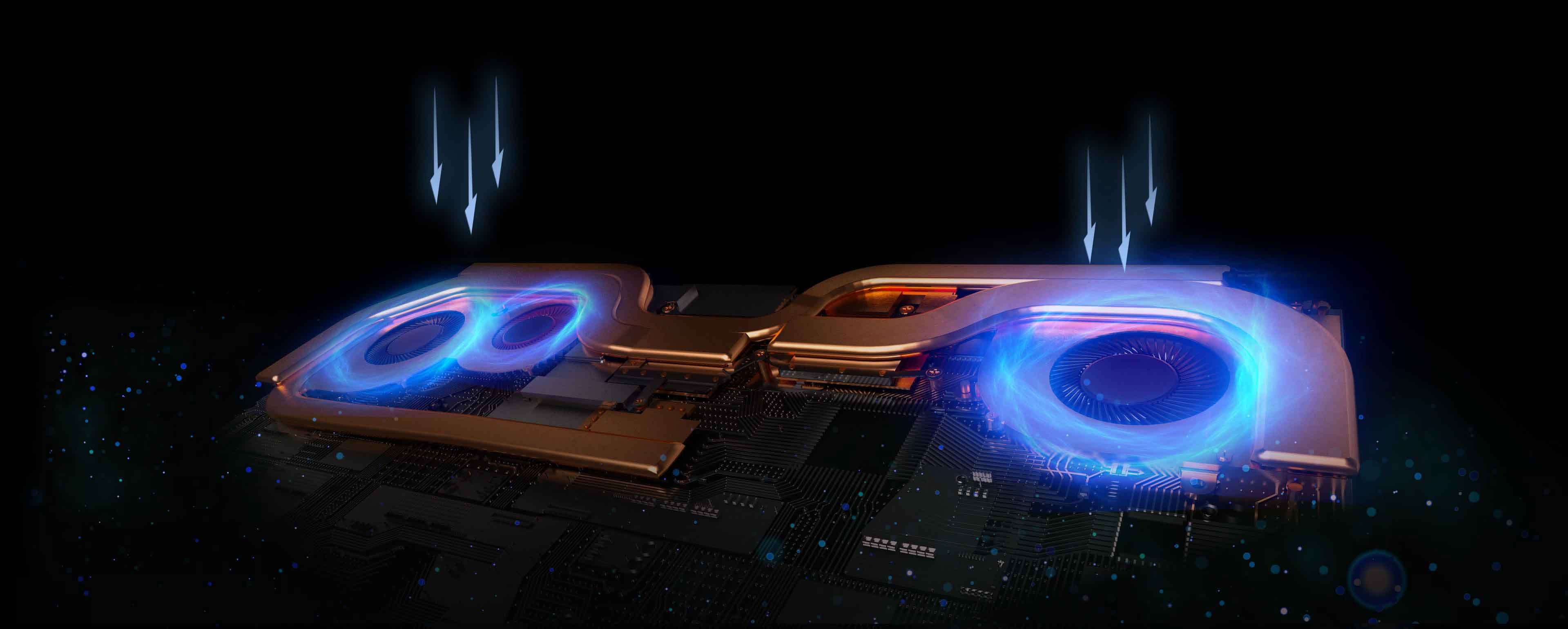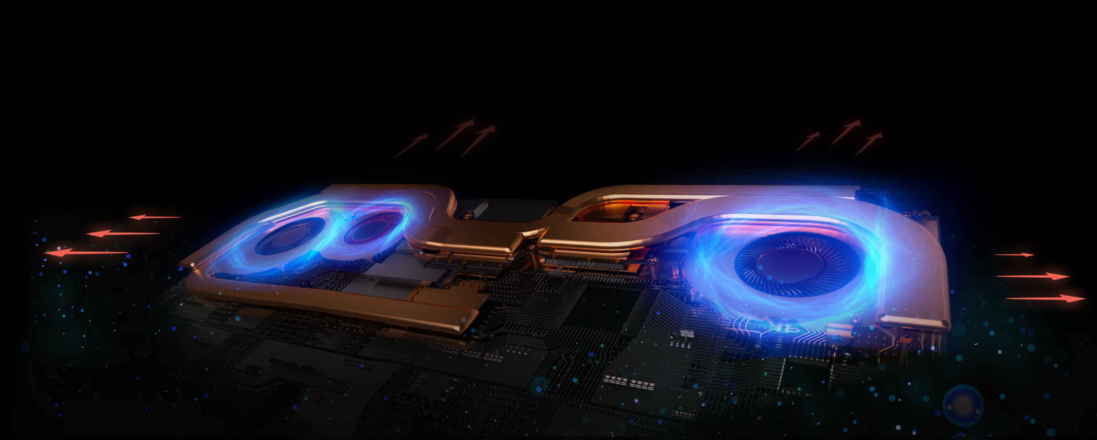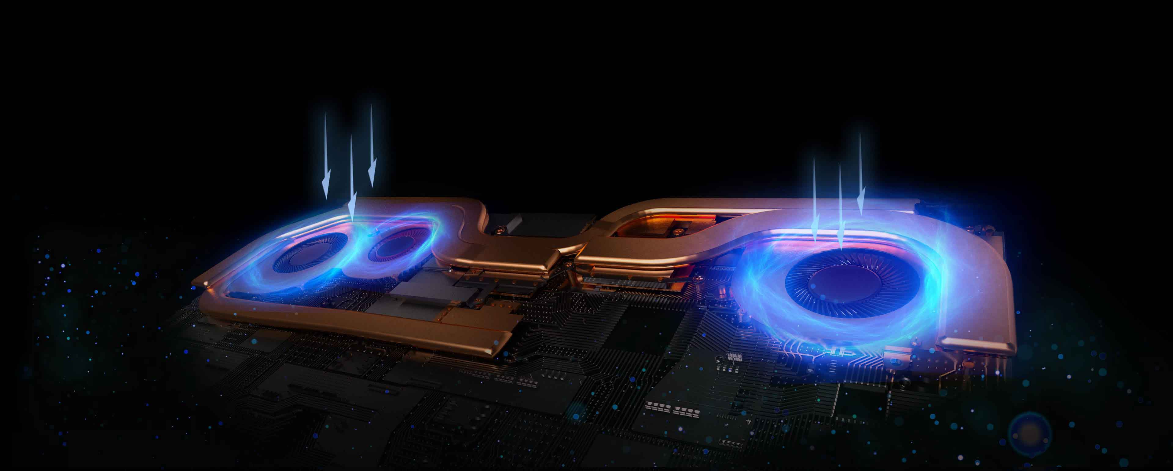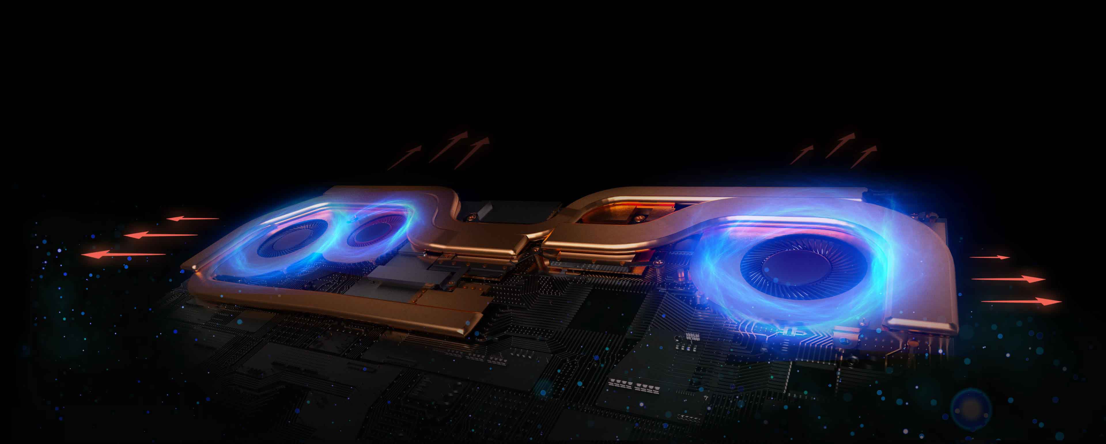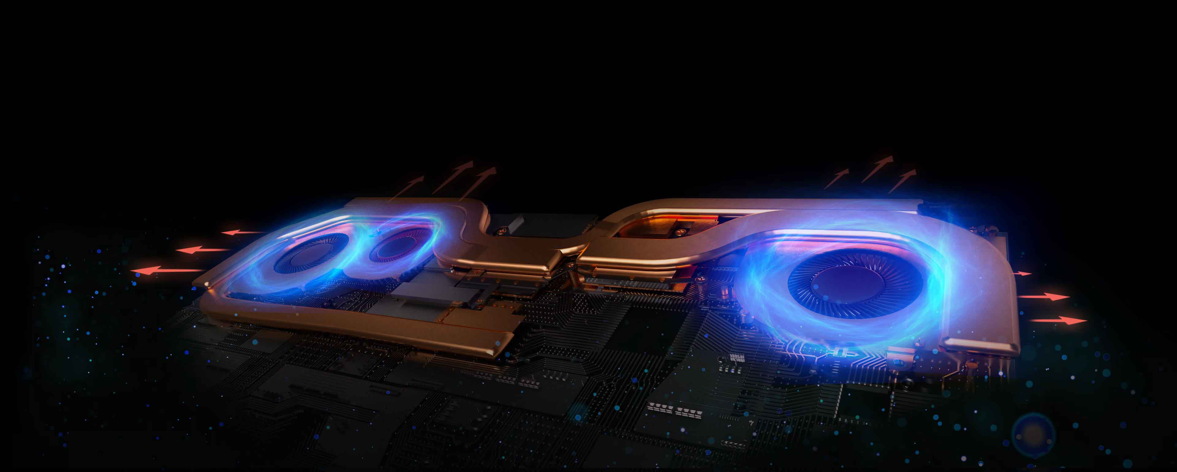 CPU和GPU独立散热解决方案配有4根热管,即使在极端负载下也能确保提供最佳的游戏性能。