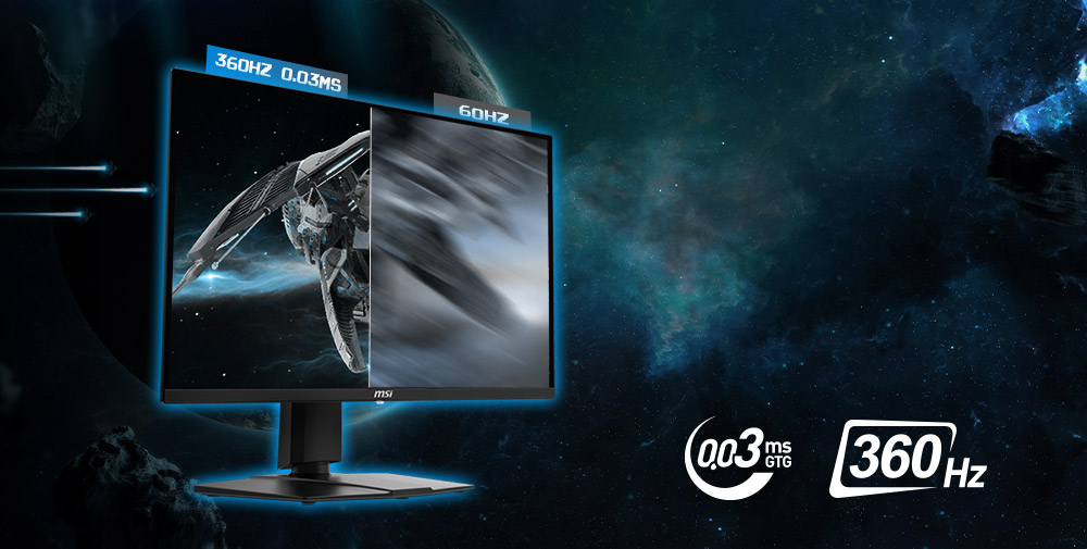 游戏时对比度惊人,配备最快的 0.03 毫秒 GtG 响应时间和 360 Hz 刷新率