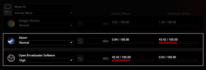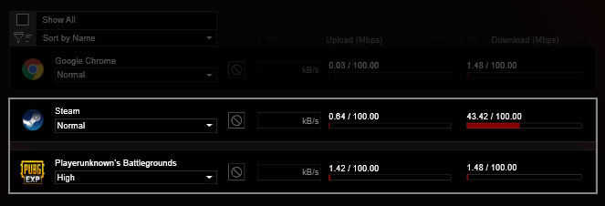 网络管理功能会显示当前所有应用程序各自所占用的网络带宽,帮助用户确定应用程序的优先级顺序。