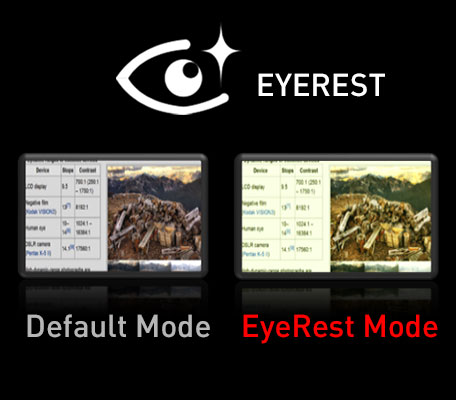 Inclusive THREE predefined modes-EyeRest mode, Game Mode, and Movie Mode.