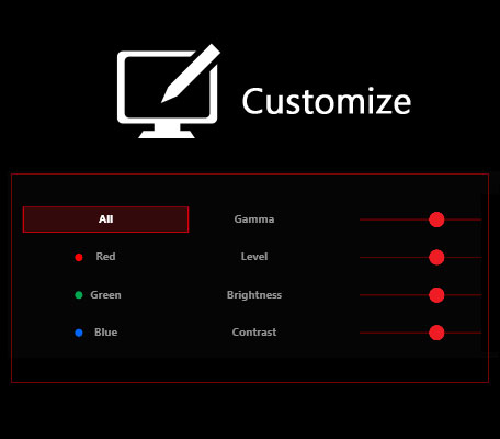 If you are not satisfied with the predefined mode, the Customize mode gives you the option to adjust Gamma, Level, Brightness and Contrast of all colors to match your preference.