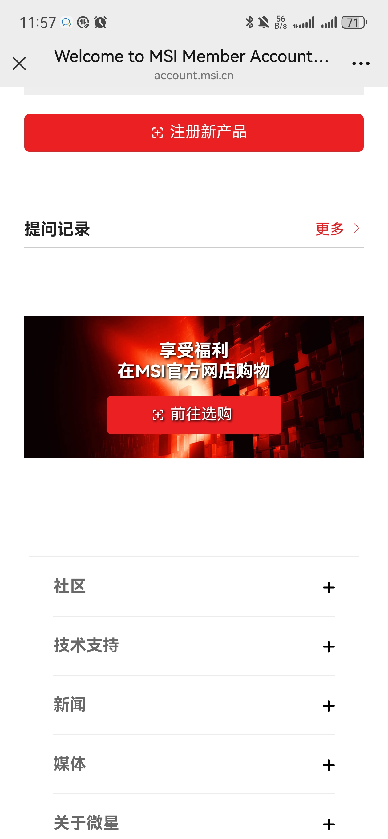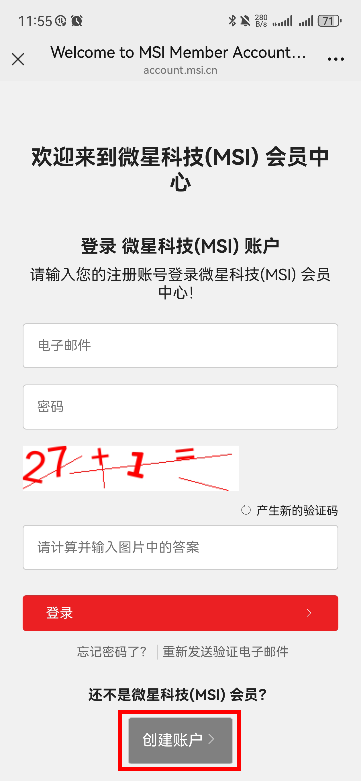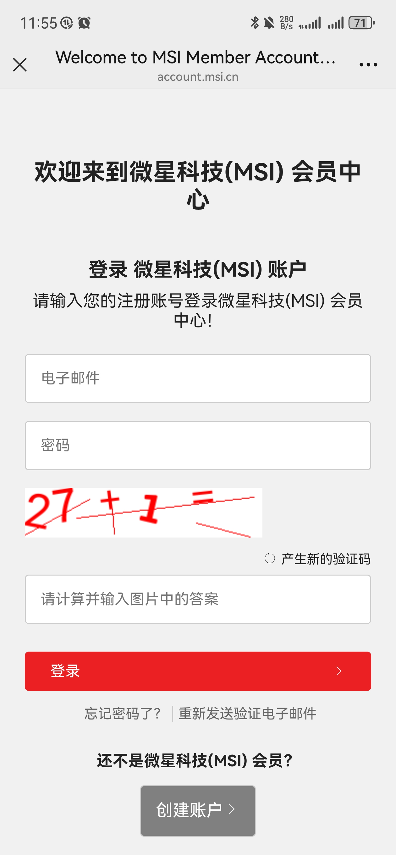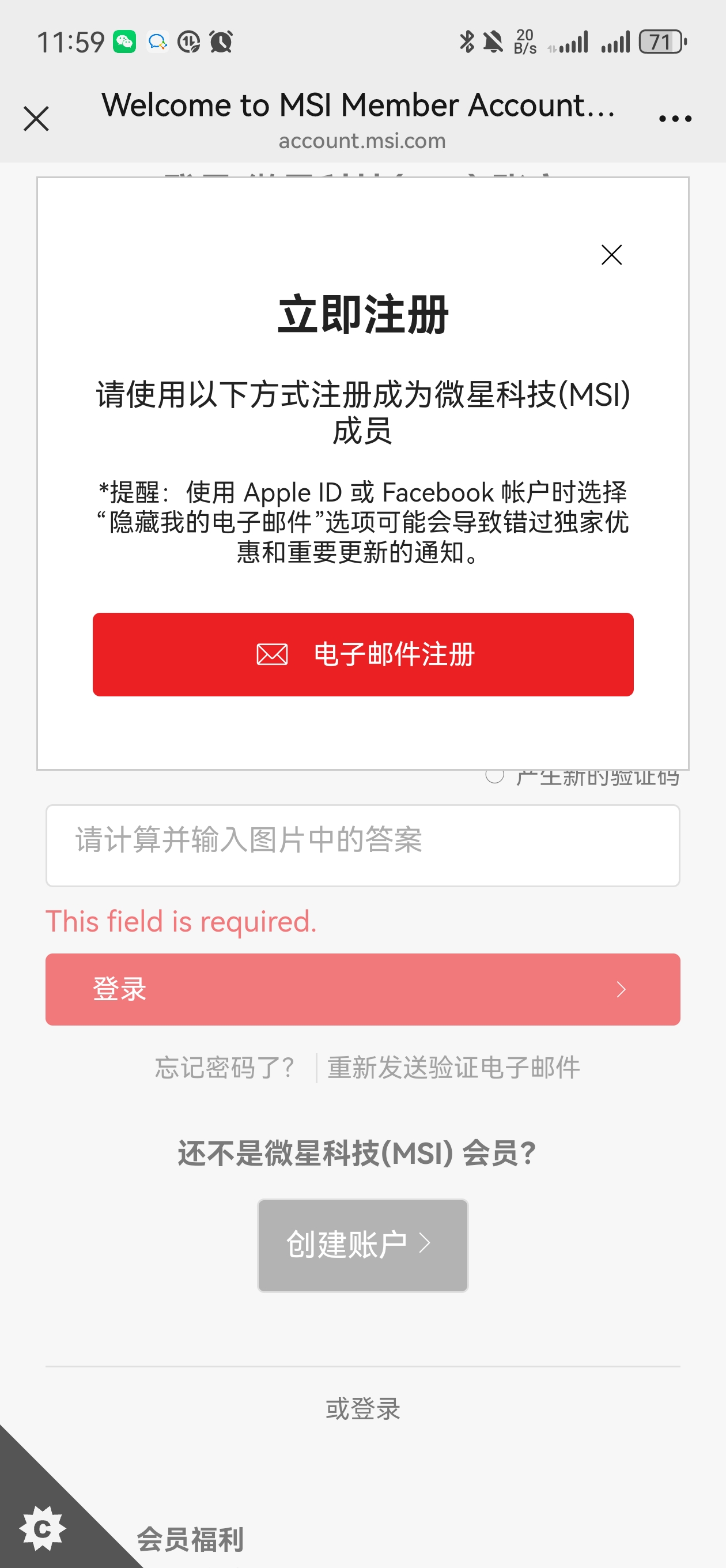 若您无微星会员账号,请您先创建账户