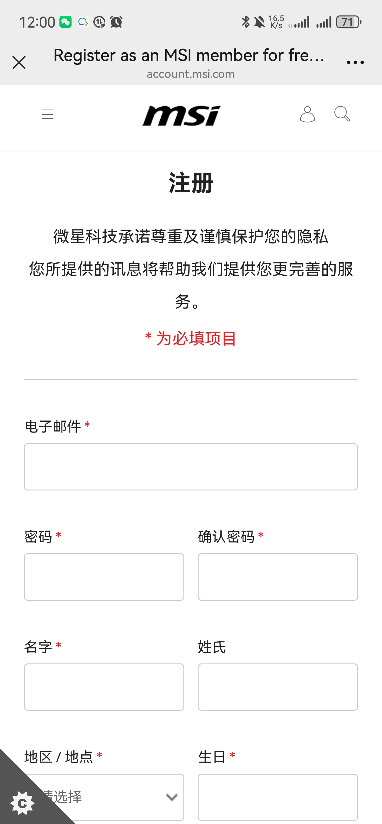 填写完整信息后成为微星会员