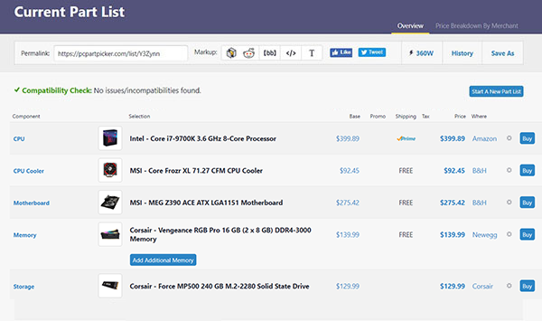 分享, 将此清单转传分享给朋友,进行计算机组装的推荐与讨论;