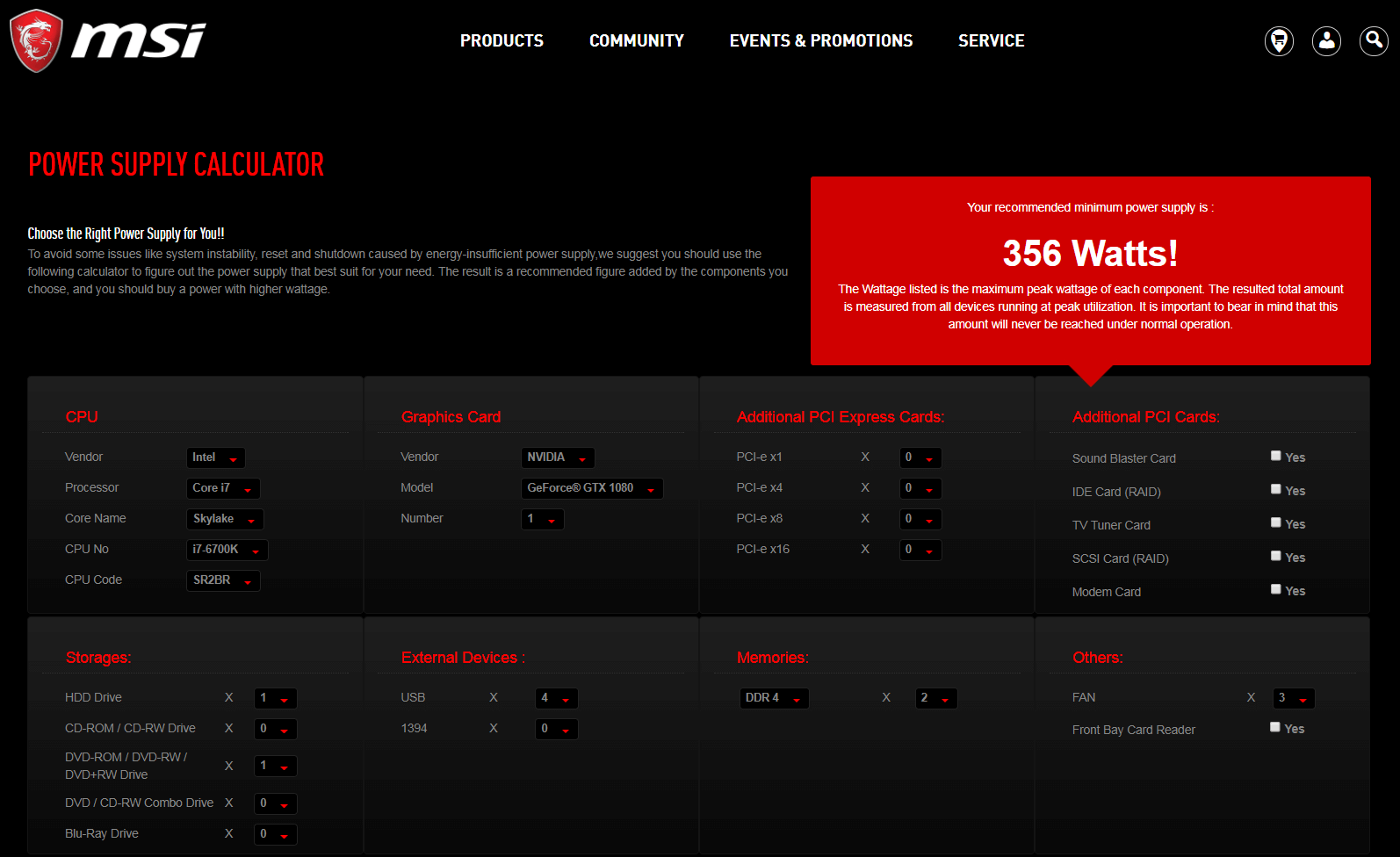 多数玩家在购买计算机产品时,遇到的最大问题几乎都是”到底我要买多大的PSU!?”。这个不仅决定你计算机未来升级的弹性,错买电力不足的电源供应器也可能导致系统不稳定或可连接的电缆线不足可。MSI电力需求估算器(https://www.msi.com/power-supply-calculator )可以协助你解决这么烦恼,透过你的需求,直接告诉你所需要的电力大小。