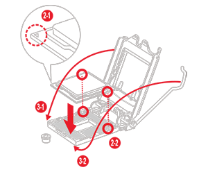 - 确认CPU凹槽与角落箭头,小心轻放至CPU Socket位置