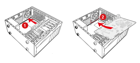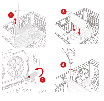 - 用螺丝将显示适配器固定在机壳显卡插槽锁孔