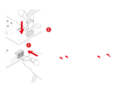 - 将主板附赠的SATA连结缆线, 插入主板上的SATA插槽内。将SATA线的另一端连结至2.5吋或3.5吋硬盘或其他装置上。