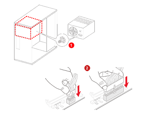 - 将电源供应器安装至机壳内,并使用搭配的螺丝进行固定