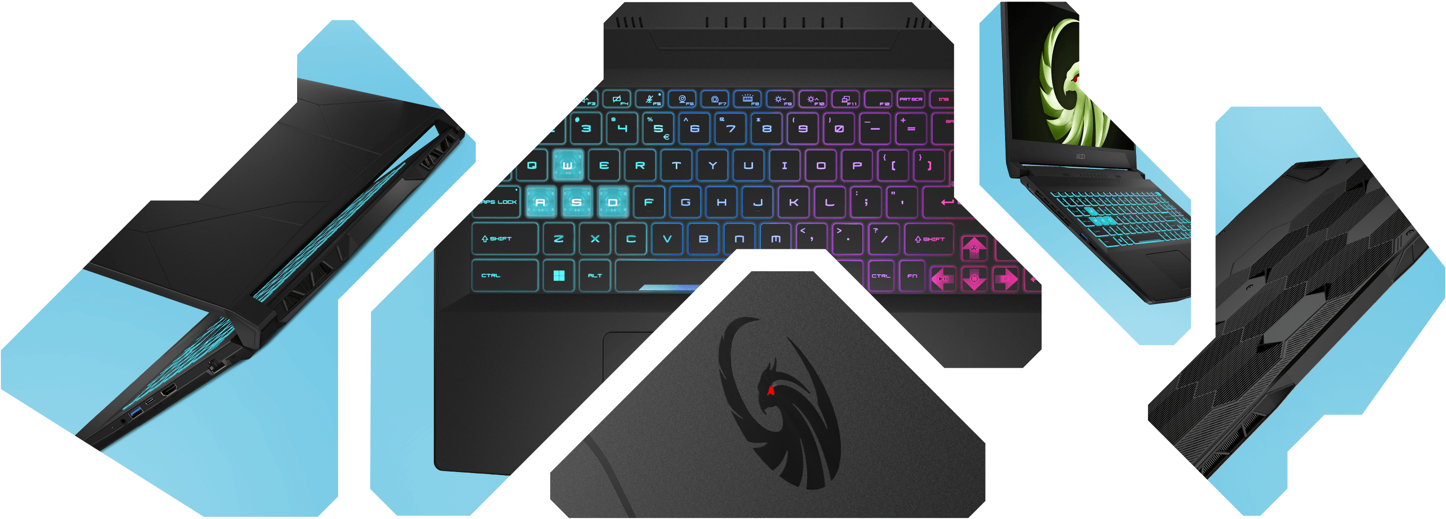 配备四区RGB炫彩游戏键盘和WASD独立游戏按键设计,为您打造如星空般绚丽的沉浸游戏体验,如脉冲波般的炫彩伴您征战每一场战役!