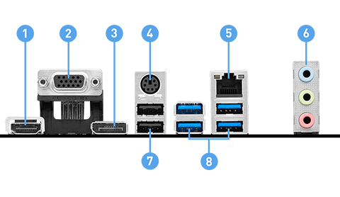 | Onboard Graphics | 1x HDMI™Support HDMI™ 2.1 with HDR, maximum resolution of 4K 60Hz*1x DisplayPortSupport DP 1.4, maximum resolution of 4K 60Hz*1x D-SubSupport VGA, maximum resolution of 2048x1536 50Hz, 2048x1280 60Hz, 1920x1200 60Hz*Available only on processors featuring integrated graphics. Graphics specifications may vary depending on the CPU installed. |