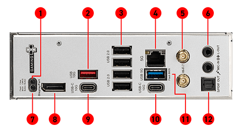Wi-Fi 7 SolutionThe Wireless module is pre-installed in the M.2 (Key-E) slot Supports MU-MIMO TX/RX, 2.4GHz/ 5GHz/ 6GHz* (320MHz) up to 5.8Gbps Supports 802.11 a/ b/ g/ n/ ac/ ax/ be Supports Bluetooth® 5.4**, MLO, 4KQAM * 6GHz band support may depend on every country’s regulations and Wi-Fi 7 will be ready in Windows 11 version 24H2. ** The Bluetooth version may be updated, please refer to the Wi-Fi chipset vendor’s website for details. Bluetooth 5.4 will be ready in Windows 11 version 24H2. |