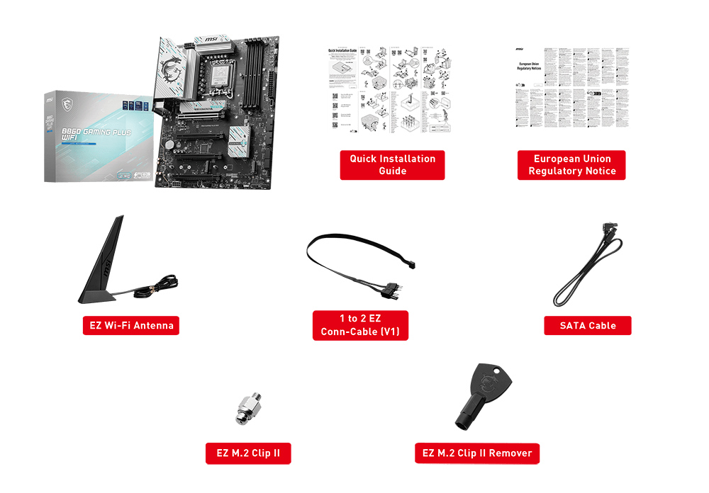 Intel® Killer™ BE1750x Wi-Fi 7The Wireless module is pre-installed in the M.2 (Key-E) slot Supports MU-MIMO TX/RX, 2.4GHz / 5GHz / 6GHz* (320MHz) up to 5.8Gbps Supports 802.11 a/ b/ g/ n/ ac/ ax/ be Supports Bluetooth® 5.4**, MLO, 4KQAM * 6GHz band support may depend on every country’s regulations and Wi-Fi 7 will be ready in Windows 11 SV3. ** The Bluetooth version may be updated, please refer to the Wi-Fi chipset vendor's website for details. Bluetooth 5.4 support schedule depends on MSFT Windows 11 plan. |