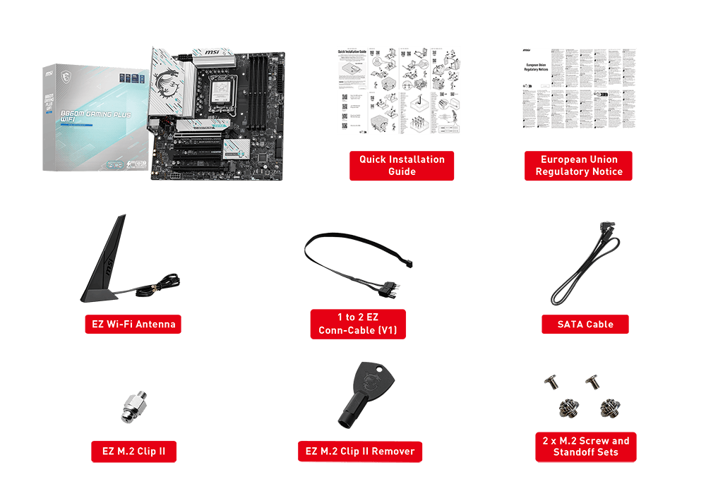 Intel® Killer™ BE1750x Wi-Fi 7The Wireless module is pre-installed in the M.2 (Key-E) slot Supports MU-MIMO TX/RX, 2.4GHz / 5GHz / 6GHz* (320MHz) up to 5.8Gbps Supports 802.11 a/ b/ g/ n/ ac/ ax/ be Supports Bluetooth® 5.4**, MLO, 4KQAM * 6GHz band support may depend on every country’s regulations and Wi-Fi 7 will be ready in Windows 11 SV3. ** The Bluetooth version may be updated, please refer to the Wi-Fi chipset vendor's website for details. Bluetooth 5.4 support schedule depends on MSFT Windows 11 plan. |