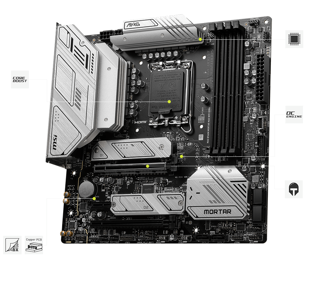 MAG 系列主机板为荣誉而生,与玩家一同并肩作战。 MSI主机板增添浓浓军事元素,提供坚实稳定最佳平台。