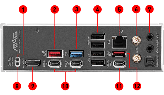 Wi-Fi 7 SolutionThe Wireless module is pre-installed in the M.2 (Key-E) slot Supports MU-MIMO TX/RX, 2.4GHz/ 5GHz/ 6GHz* (320MHz) up to 5.8Gbps Supports 802.11 a/ b/ g/ n/ ac/ ax/ be Supports Bluetooth® 5.4**, MLO, 4KQAM * 6GHz band support may depend on every country’s regulations and Wi-Fi 7 will be ready in Windows 11 version 24H2. ** The Bluetooth version may be updated, please refer to the Wi-Fi chipset vendor’s website for details. Bluetooth 5.4 will be ready in Windows 11 version 24H2. |