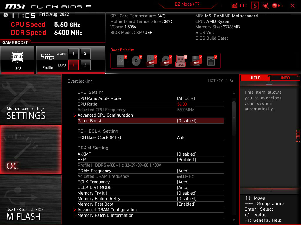 可从预设的EXPO 资料夹中直接选择设定参数,让记忆体轻松自动超频,获得最好的相容性。