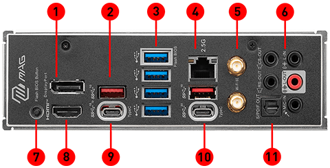 | Onboard Graphics | 1x HDMI™Support HDMI™ 2.1 FRL, maximum resolution of 4K 120Hz*1x DisplayPortSupport DP 1.4, maximum resolution of 4K 60Hz*1x Type-C DisplayPortSupports DisplayPort 1.4 with HBR3, maximum resolution of 4K 120Hz*Available only on processors featuring integrated graphics. Graphics specifications may vary depending on the CPU installed. |